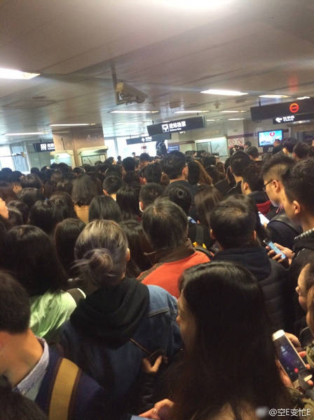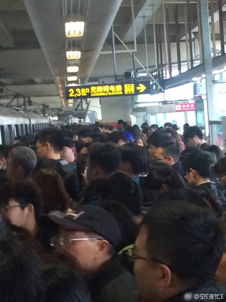 Cả một đoàn tàu lớn ở Trung Quốc phải ngừng hoạt động bởi có vật thể lạ trên đường ray. Ban đầu có thông báo delay 10 phút nhưng mọi người cứ chờ hoài. Cả phía ngoài những người đi tàu cũng phải xếp thành một hàng khá dài.