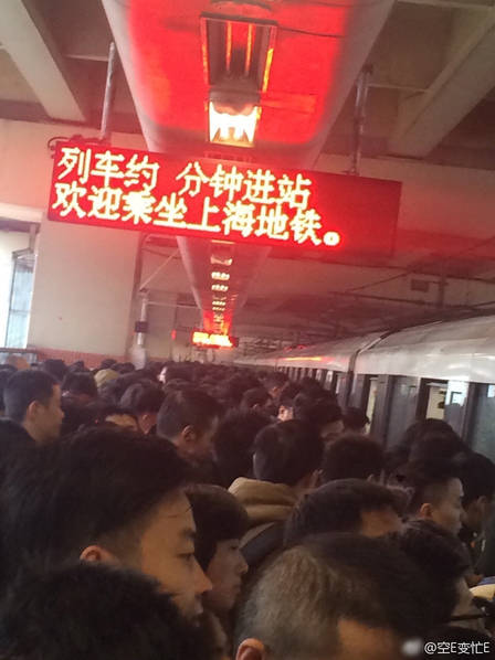 Những hình ảnh chụp lại từ một ga tàu điện, nơi hành khách ngao ngán chờ được lên tàu đi làm vào sáng thứ Hai vừa qua ở Thượng Hải: