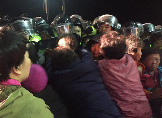 Nhiều người dân địa phương đã đụng độ với cảnh sát để phản đối triển khai THAAD. (Ảnh: Twitter)
