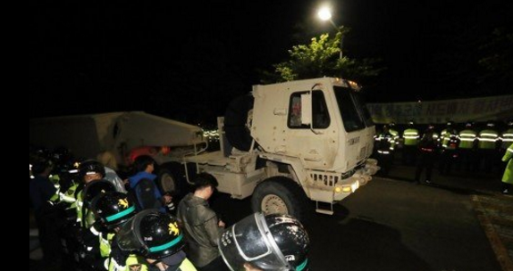 Cuối cùng hệ thống lá chắn tên lửa THAAD cũng đã có mặt tại Hàn Quốc. Lo sợ đây là cái cớ mà Triều Tiên sẽ tấn công, người địa phương Hàn Quốc đã vô cùng tức giận. Cảnh sát đụng độ người biểu tình tại khu vực phía nam Hàn Quốc.