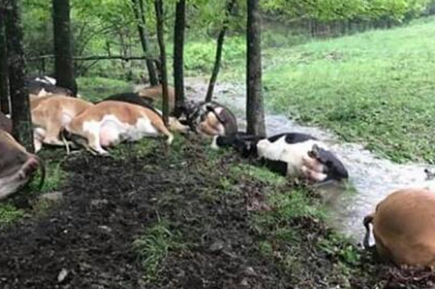 Theo Daily Star, người nông dân tên Jared Blackwelder và vợ Misty đã hết sức ngỡ ngàng khi chứng kiến cảnh đàn bò nằm chết la liệt sau một cơn bão vào cuối tháng trước.