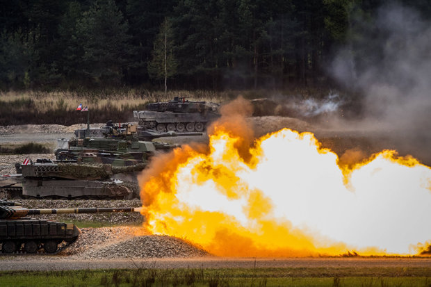 Trong ngày 14.5, quân đội NATO cũng phô diễn sức mạnh của mình. Liên quân Đức, Mỹ, Pháp, Áo, Ukraine và Ba Lan tham gia vào chiến dịch xe tăng ở thị trấn Grafenwoehr của Đức.