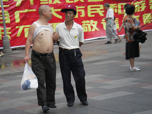 Từng có thời gian sống tại đây, Aaron Cai cho rằng cảnh vạch áo khoe bụng như “đầu độc thị giác” khách nước ngoài, tuy nhiên thói quen này không hề phổ biến với tất cả đàn ông Trung Quốc. Ảnh: Gilles Sabrie.