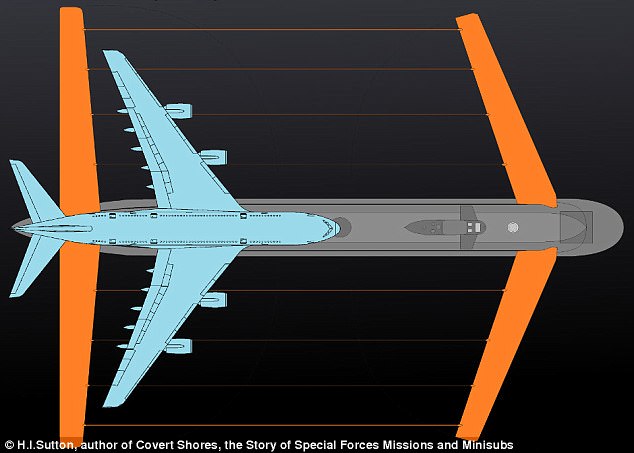 Tàu ngầm do Nga thiết kế có kích cỡ gấp đôi máy bay thương mại lớn nhất thế giới Airbus A380.