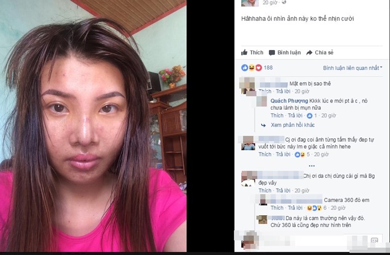 Ngắm hình ảnh này của Quách Phượng dễ thấy làn da của cô không được mịn màng, mũi và môi đều sưng tấy. Nhiều người nhận xét rằng hình ảnh Phượng mới chia sẻ đối lập với những gì mà cô thường xuyên khoe trên facebook cá nhân trước đó.
