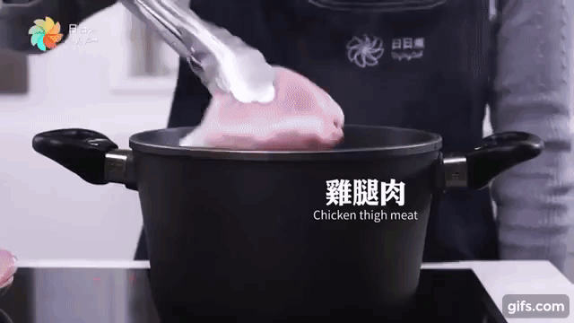- Tiếp theo thì cho thịt gà vào và đun cho sôi.