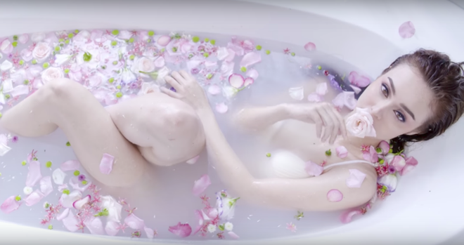Run người ngắm vẻ đẹp hình thể của nữ ca sĩ lai Pháp trong bồn tắm