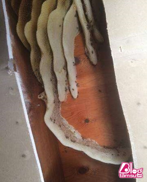 Dỡ ra một khe hở cũng có thể nhìn thấy, tổ ong dài đến cả mét, bên trong chứa hàng ngàn con ong.