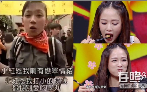 Tưởng Hân cũng là một trong những người đẹp có niềm đam mê ăn uống. Diễn viên Thiên long bát bộ từng chia sẻ, nếu không ăn, cô chẳng có động lực để làm việc và kiếm tiền. Tưởng Hương ăn "phồng miệng" trong Hậu cung Chân Hoàn truyện (ảnh trên bên phải) và Manh ước (ảnh dưới bên trái).