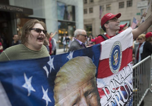 Những người ủng hộ Tổng thống Trump biểu tình ở New York ngày 29/4 nhằm đối chọi lại phong trào phản đối ông Trump vào dịp 100 ngày ông làm Tổng Thống