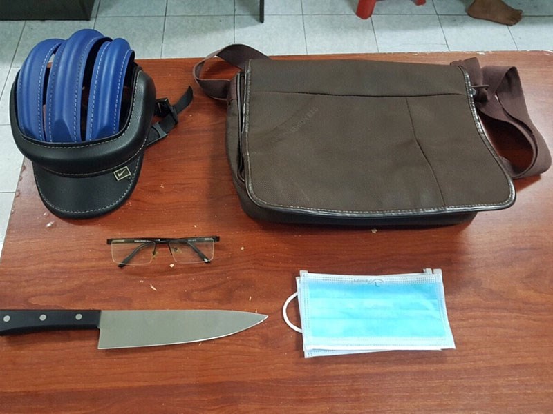 Vào bên trong tên cướp thấy chị Hà đang ngồi cùng hai con nhỏ nên rút ra con dao dài 30 cm nói lớn tôi là cướp yêu cầu đưa điện thoại và tiền bạc.