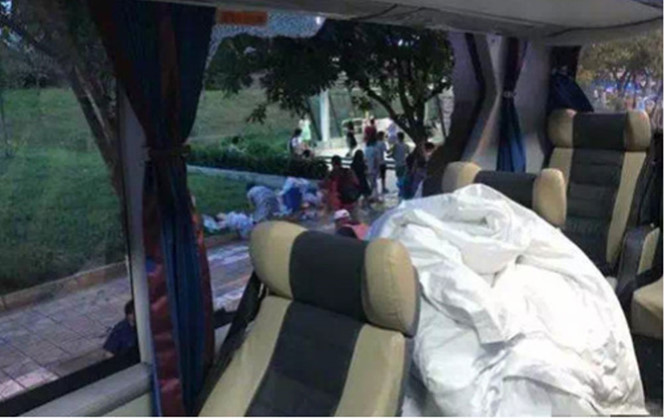 Yajing, du khách đến từ tỉnh Chiết Giang, nói: “Có rất nhiều dư chấn xảy ra và những tảng đá lớn rơi xuống dọc con đường chạy ven núi. Bất thình lình, một tảng đá rớt xuống làm vỡ kính ở hông xe và tôi nhận thấy bạn trai đang ôm lấy tôi. Khi tôi mở mắt ra, tôi thấy sàn xe đầy mảnh gương vỡ và có bốn mảnh đá to bằng nắm đấm nằm sát chân tôi”.Người bạn trai của Yajing nói, khi các tảng đá bắt đầu rơi xuống xe buýt, theo bản năng, anh choàng tay che bạn gái và dùng chiếc áo khoác làm vật chắn những mảnh gương đang bay tung tóe. Anh nói: “Tôi không kịp nghĩ bất cứ điều gì ngoài việc bảo đảm cô ấy không bị thương. May mắn, chiếc áo khoác khá dày nên các mảnh gương không gây thương tích cho chúng tôi”.
