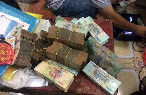Hơn 5 tỷ đồng - tang vật đánh bạc, bị cảnh sát thu giữ. Ảnh: Quốc Thắng.