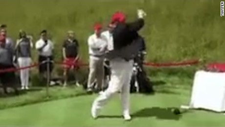 Ảnh động mà Trump chia sẻ ngày 17/9 ghép cảnh Trump vung gậy đánh golf với cảnh Hillary Clinton vấp ngã khi lên máy bay vào năm 2011. Nó được chỉnh sửa để trông như thể Clinton bị quả bóng golf đánh trúng vào lưng trước khi ngã. Đây là ảnh chế do một tài khoản Twitter ủng hộ Trump làm tặng Tổng thống.