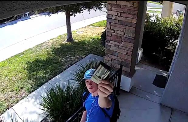 Nam thanh niên trong đoạn video là Tyler Opdyke, 18 tuổi đến từ Sacramento ở California. Anh này đang trên đường đi phát tờ rơi, thì nhìn thấy một chiếc ví rơi ở lối vào nhà Melissa. Chiếc ví chứa thẻ tín dụng và 1.500 USD (hơn 34 triệu đồng) tiền mặt.