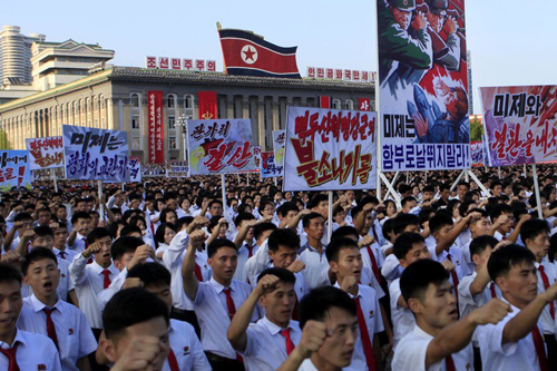 Người dân thủ đô Bình Nhưỡng tuần hành chống Mỹ. Ảnh: Reuters.