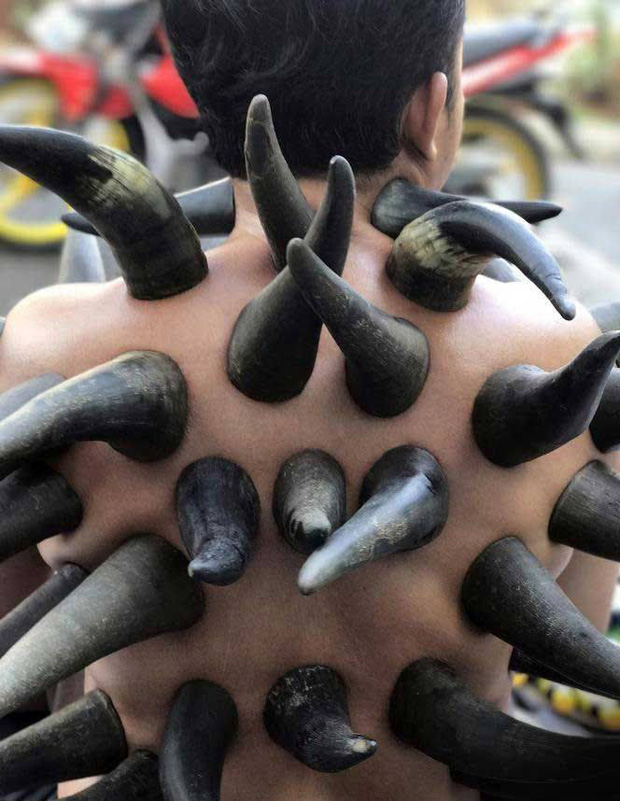 Trông như thể người đàn ông mọc sừng trên lưng.