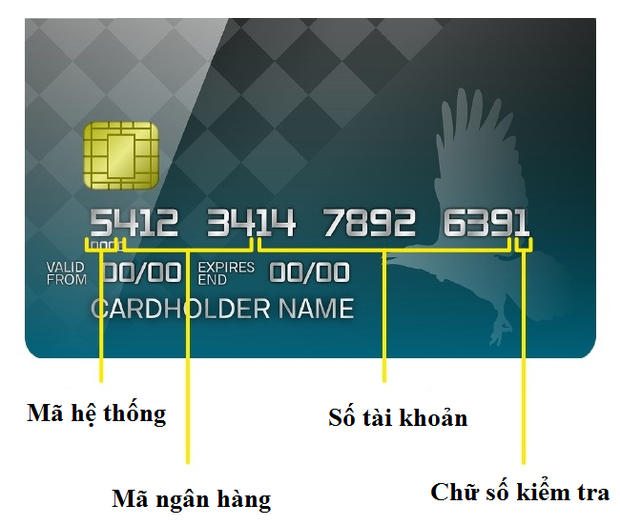 Hầu hết các thẻ ngân hàng đều có 16 chữ số (đôi khi là 13 hoặc 19 chữ số). Chữ số đầu tiên là mã nhận dạng hệ thống (VD: 4 – VISA, 5 – MasterCard).