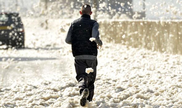 Và tại thị trấn Cleveleys, cơn bão tiếp tục gây ra một sự “phi thường” khác – toàn bộ thị trấn bị bao trùm bởi bọt trắng.