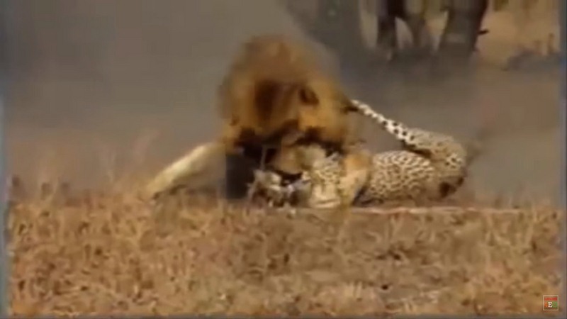 Bằng sức mạnh của loài mãnh thú uy lực nhất châu Phi, sư tử đực lao lên tấn công nhanh như tia chớp. Ở cự li 100 mét, sư tử đực có thể xé gió với vận tốc 80 km/giờ. Dù báo săn là loài động vật nhanh nhất trên cạn nhưng nó không kịp phản ứng trước cú ra đòn quá bất ngờ và đúng thời điểm của sư tử.