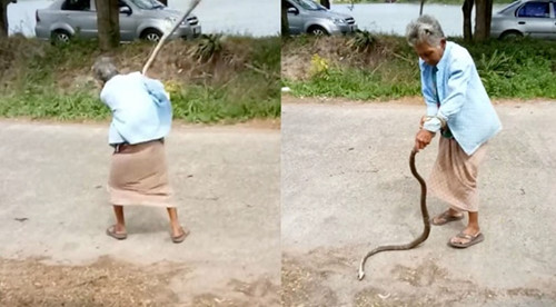 Dù đã 74 tuổi nhưng cụ bà vẫn rất can đảm. Sau khi phát hiện con rắn đang ăn con mồi. Cụ bà đã dồn theo con rắn, tay không quật chết con rắn. Hành động của cụ bà khiến nhiều người không khỏi trầm trồ.