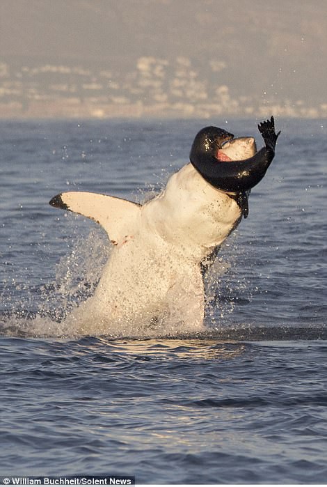 Một con cá mập lớn đã vô cùng đau đớn khi bị con mồi tấn công ngược lại. Con cá mập sau một hồi vật lộn, cuối cùng đã chịu thua và nhả con mồi ra. Hành động tự vệ cực nhanh và kiên quyết của hải cẩu đã khiến người chụp hình vô cùng cảm phục.
