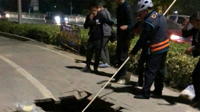 Một phụ nữ ở Trung Quốc bị hố tử thần nuối chửng khi đang đi bộ trên vỉa hè. Chiếc hố sâu 2m bất ngờ xuất hiện vì sự cố vỡ ống nước. Cô này bị rơi xuống hố sâu vì vỉa hè sụt lún.