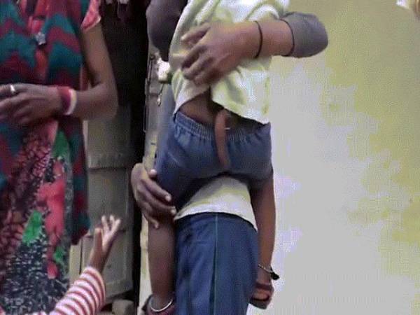 Cậu bé Krishna Yadav, 3 tuổi, đã trở nên nổi tiếng tại ngôi làng Kukudi thuộc bang Uttar Pradesh ở Ấn Độ, với một chiếc đuôi dài khoảng 30cm mọc ở sau lưng. Nhiều người tin rằng bé trai là hiện thân của thần khỉ Bajrangbali trong đạo Hindu.