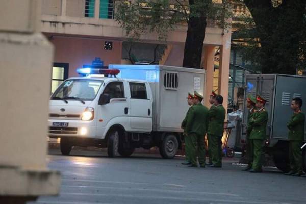 Xe chở bị cáo di chuyển vào TAND TP.Hà Nội
