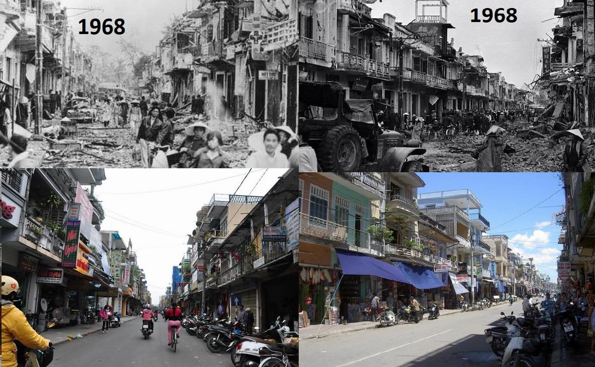 Tết Mậu Thân 1968 ... Như bao địa điểm khác ở Huế phải gánh chịu thê lương , phố Ngã giữa - Phan Bội Châu bị tàn phá nghiêm trọng, thiệt hại nặng nề ...