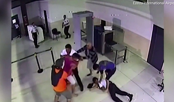 Mọi thứ chỉ tạm thời dừng lại cho tới khi cặp thanh niên cao lớn - được xác định là con trai của Vidal bất ngờ xuất hiện để giải cứu cha ruột, gây nên cuộc ẩu đả với lực lượng an ninh ở Sân bay Quốc tế Ministro Pistarini.