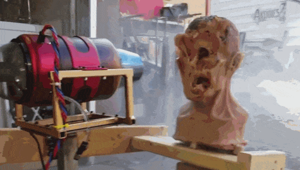 Sức mạnh khủng khiếp của tốc độ gió thổi ra từ động cơ phản lực đủ sức thổi bay mọi thứ, thậm chí là cả da mặt của con người. Để cho thấy sức hủy diệt khủng khiếp của động cơ phản lực, kênh YouTube Hacksmith đã thử đặt một mô hình đầu người bọc cao su trước động cơ phản lực.