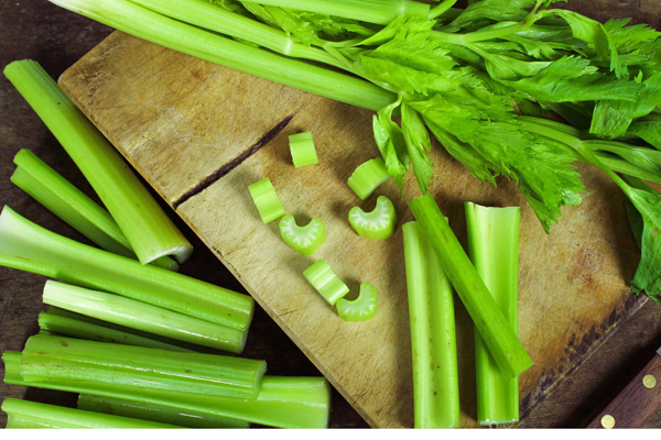 Cần tây chứa nhiều chất xơ, vitamin C, E, K, giúp đánh tan mỡ thừa hiệu quả.