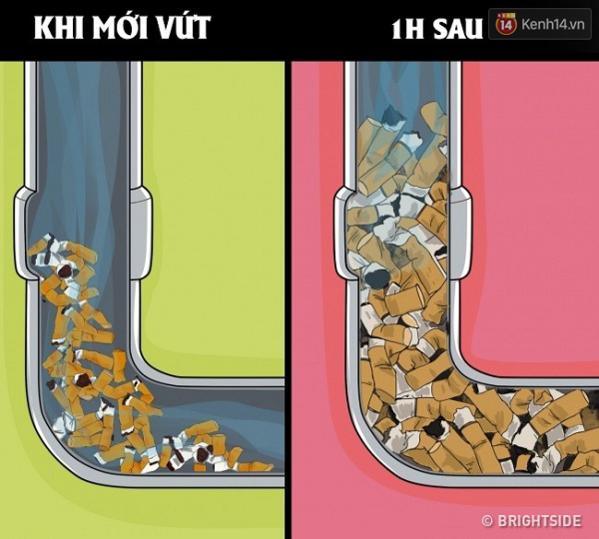 Nếu như tóc lọt xuống ống cống, chúng có thể cuốn vào nhau, tạo thành những quả cầu tóc khổng lồ, khiến các loại rác khác kẹt lại.