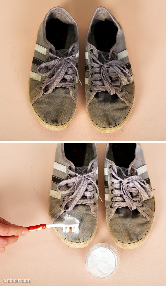 Hỗn hợp nước, oxy già cùng bột baking soda có khả năng làm sạch giày dép nhanh chóng.