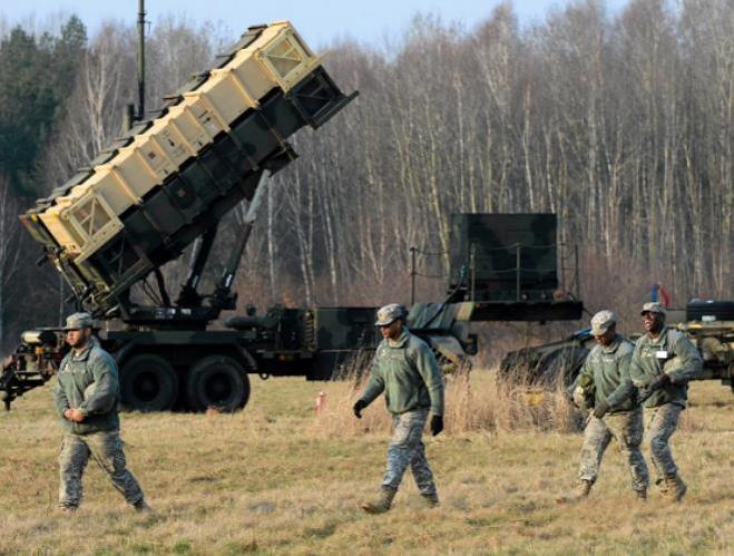 Lính Mỹ đi cạnh hệ thống tên lửa "Người yêu nước" tại căn cứ gần Warsaw (21 tháng 3 năm 2015)