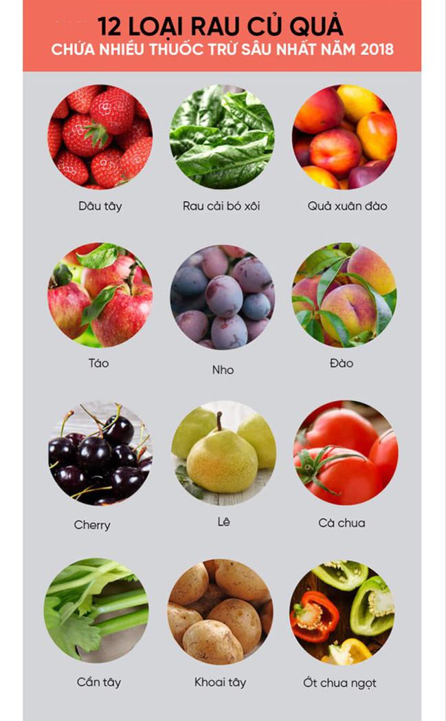 Danh sách 12 loại rau củ quả chứa nhiều thuốc trừ sâu nhất năm 2018