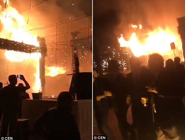 Hơn 300 quan khách có mặt tại bữa tiệc hoảng loạn tháo chạy thoát thân khi ngọn lửa bùng phát thiêu rụi cả căn phòng.