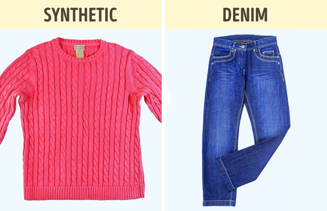 Vải dệt kim, vải sợi tổng hợp, vải jeans... thường có xu hướng chảy, giãn sau một thời gian sử dụng. Đối với chất liệu này bạn nên chọn các size nhỏ hơn kích cỡ thật của cơ thể để có thể mặc được lâu hơn.