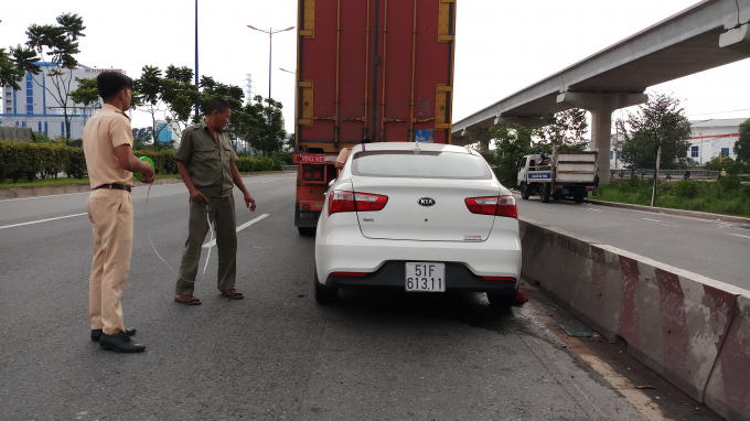 Khi ông Phước đang đứng sau đuôi xe container thì bất ngờ bị xe ô tô 4 chỗ Kia Rio biển số 51F-613.11 húc mạnh vào phía sau làm ông Phước văng vào thùng xe container.