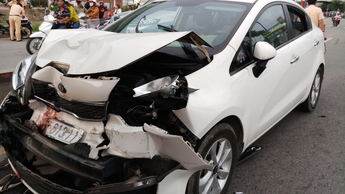 Vụ tai nạn còn làm đầu xe ô tô hư hỏng nặng. Hiện nguyên nhân vụ việc đang được công an quận Thủ Đức xử lý.