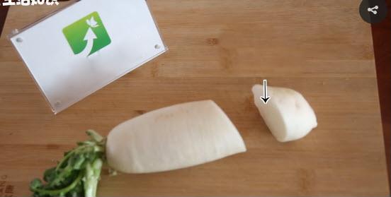 Dùng dao cắt hơi chéo củ cải, lấy một phần nhỏ củ cải ra.