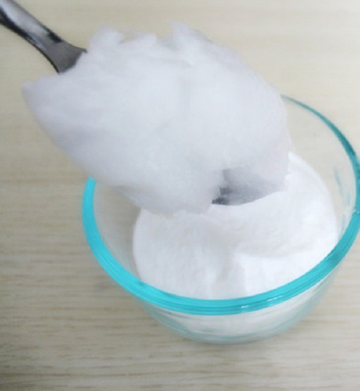Nếu bạn có dầu dừa đông lại ở dạng rắn thì bạn nên đun chảy hoặc làm mềm dầu dừa hơn 1 chút.