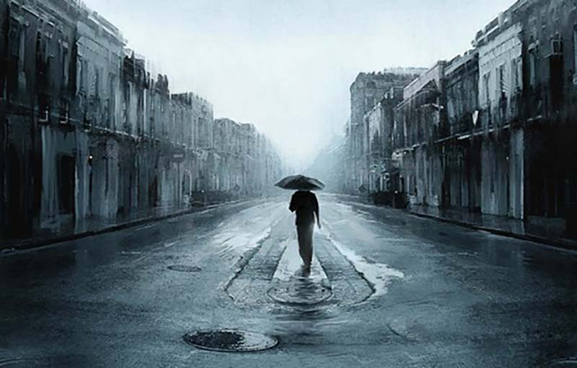 Khi trở về, người cầm dù bị ướt đẫm, người cầm gậy chống bị thương, người còn lại thì không sao hết.