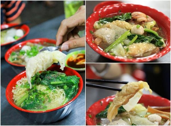 Lại một món ăn của người Hoa chiếm trọn cảm tình của các "cú đêm", món sủi cảo nóng hổi trên đường Hà Tôn Quyền - đoạn đường nức tiếng với món ăn này. Tô sủi cảo tự chọn nhiều loại như bong bóng cá, cá viên, đậu bắp... có nước dùng vị thanh, chấm với tương đen, thêm vài lát ớt xắt cay cay đã miệng. Một tô khoảng 30.000 - 45.000 đồng, thêm vắt mì nếu bạn muốn ăn no.
