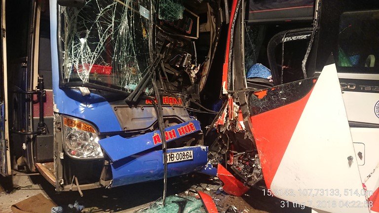 Quảng Nam trước đó xảy ra vụ tai nạn kinh hoàng khiến 13 người đi đón dâu thiệt mạng. Mới đây lại xảy ra một vụ tai nạn xe khách giường nằm tại tỉnh này. Hai xe đâm vào nhau khiến hư hỏng nặng.