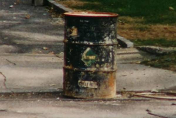 Chiếc thùng phuy chứa thi thể nạn nhân.