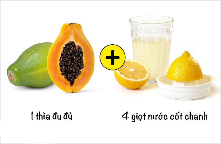 Đu đủ chứa nhiều chất chống oxy hoá, vitamin A và hàm lượng lớn axit hydroxy alpha (AHA), có tác dụng chống lão hoá da. Nước cốt chanh giúp làm sáng và đều màu da.