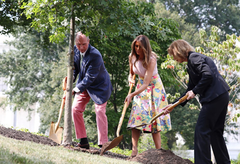 Đài Fox News ngày 28.8 đưa tin đệ nhất phu nhân Mỹ Melania Trump vừa tham gia trồng cây tại khu vực phía nam trong khuôn viên Nhà Trắng.
