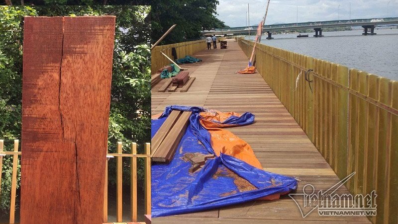 Công trình đường đi bộ lát gỗ lim ven sông Hương, thành phố Huế. Gỗ lim tại dự án này chưa sử dụng đã nứt nẻ hàng loạt. Đơn vị cung cấp gỗ tiết lộ thông tin gây sốc.